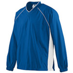 Micro Poly Pullover Jacket Outer shell of 100% micro polyester Body lined with 100% polyester mesh Sleeves lined with 100% polyester taffeta; Tipped 1x1 rib-knit V-neck collar Vented back with hook and loop closure; White piping in front and back armholes White side panels; Raglan sleeves; Reinforced slash front pockets Elastic cuffs; Open bottom; Dropped tail; Water-resistant; Machine-washable Individually polybagged