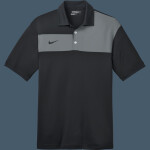 Colorblocking on the chest challenges the traditional polo, while Dri-FIT moisture management technology helps keep things cool. Features a self-fabric collar, three-button placket and open hem sleeves. The contrast heat transfer Swoosh design trademark is on the right chest. Made of 6-ounce, 100% polyester Dri-FIT fabric.